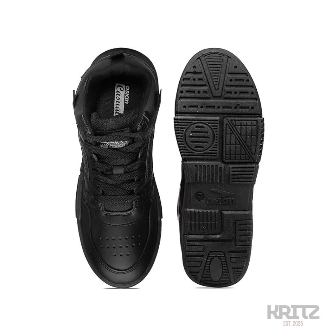 Asian men all black chunky sneakers are designed for a powerful street-style look with daily comfort. The all-black design gives a bold, premium feel, while the soft cushioned sole and strong grip make them perfect for college, walking, and everyday casual wear at a normal price.