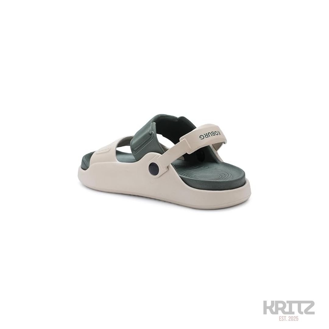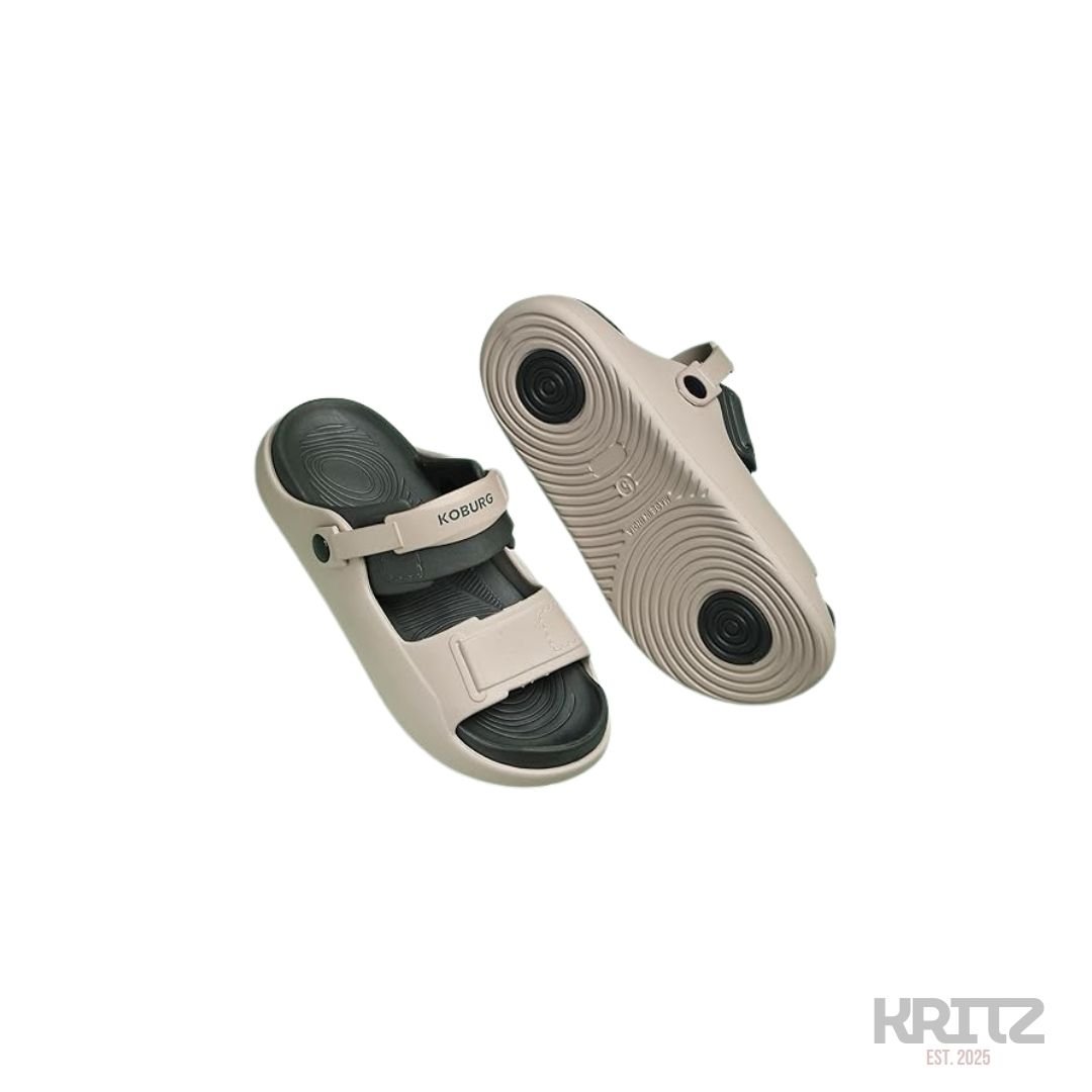 Soft molded footbed ke saath designed ye comfortable slingback sandals daily wear ke liye perfect hain. Lightweight sole, secure back strap aur anti-slip grip inhe home use, casual outings aur travel ke liye ideal banata hai. Modern dual-tone design everyday style ko clean aur premium look deta hai.